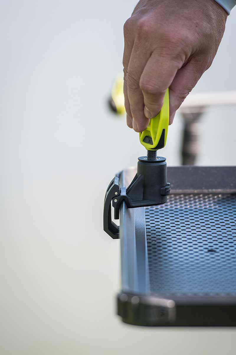 QR Clamp pozwala na zamocowanie gwintowanych produktów do Twojej tacki bocznej*