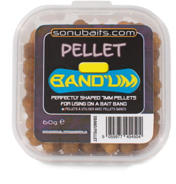Sonubaits Band Um to seria przynęt o kształcie walca, który rozszerza się ku końcom dzięki czemu pellet ten doskonale trzyma się gdy zamocujemy do na włosie za pomocą gumki. Band Um występuje w w 5 rozmiarach – 5,7,8,9mm.