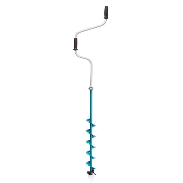 Składana rączka zmniejszyła wymiary transportowe świdra do 83 cm. Opatentowany blok pomaga szybko ustawić świder do pozycji roboczej, a także nie powoduje luzu podczas użycia. Łatwo radzi sobie z wierceniem lodu o długości metra, mimo że jest niewielki po złożeniu.