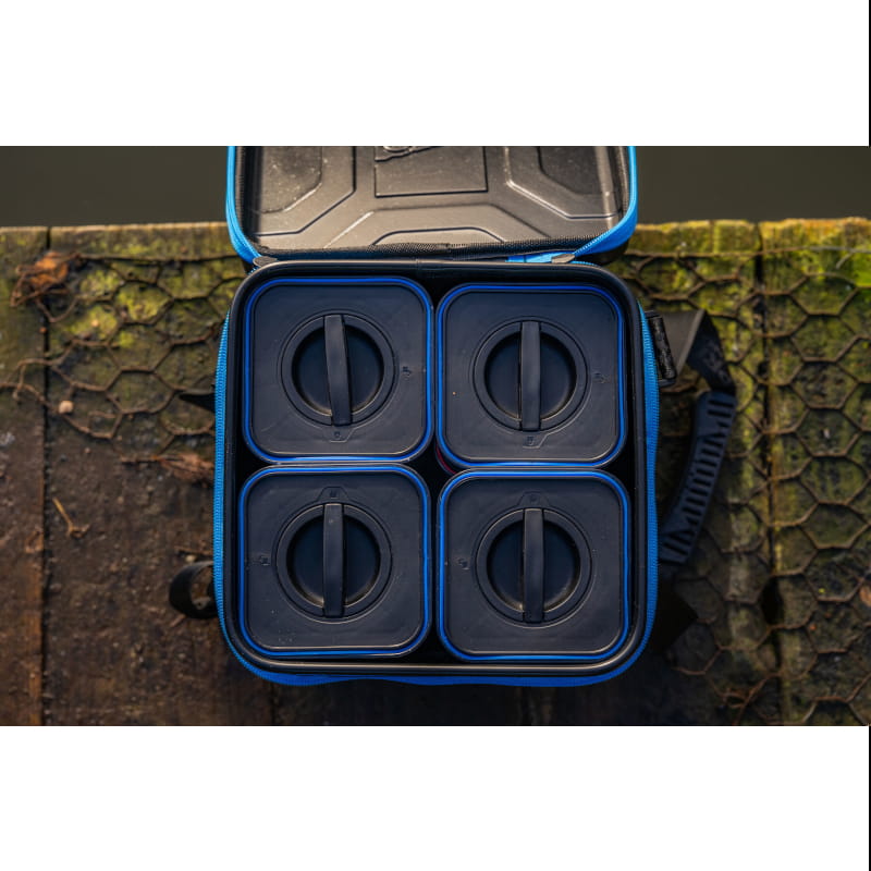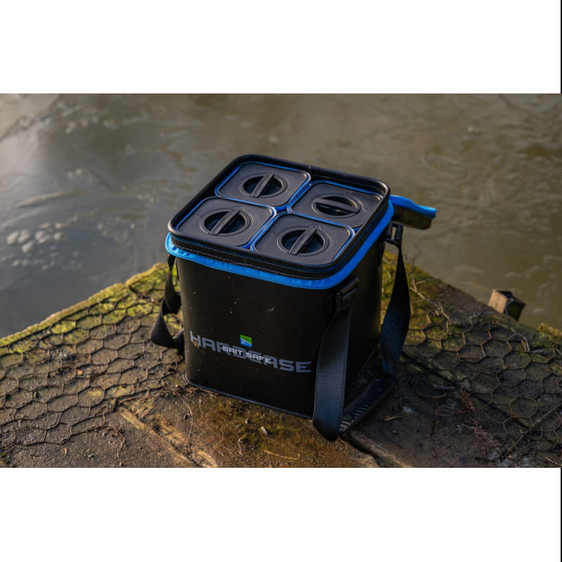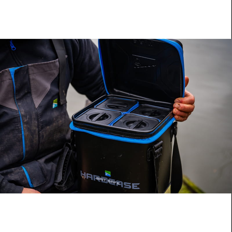 Mocna i wytrzymała torba EVA z powiększoną pokrywą Hardcase, która w zestawie zawiera 4 pojemniki Bait Safe Container o pojemności 1,6 l (2,8 pinty). Doskonała do przechowywania w suchych warunkach zanęt i przynęt.