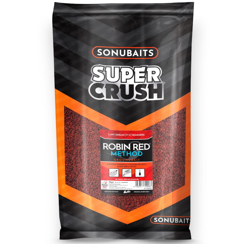 Sonubaits Supercrush Robin Red Method ma bardzo wysoką zawartość białka pochodzącego z mączki rybnej i mielonego pelletu. W zanęcie Robin Red Method znajduje się silnie pachnący składnik stosowany w rybołówstwie od wielu lat Robin Red. Wysoka zawartość mączki rybnej doskonale nadaje się do przygotowania pasty poprzez dodanie większej ilości wody dzięki czemu zanęta sprawdzi się również w wędkarstwie spławikowym.